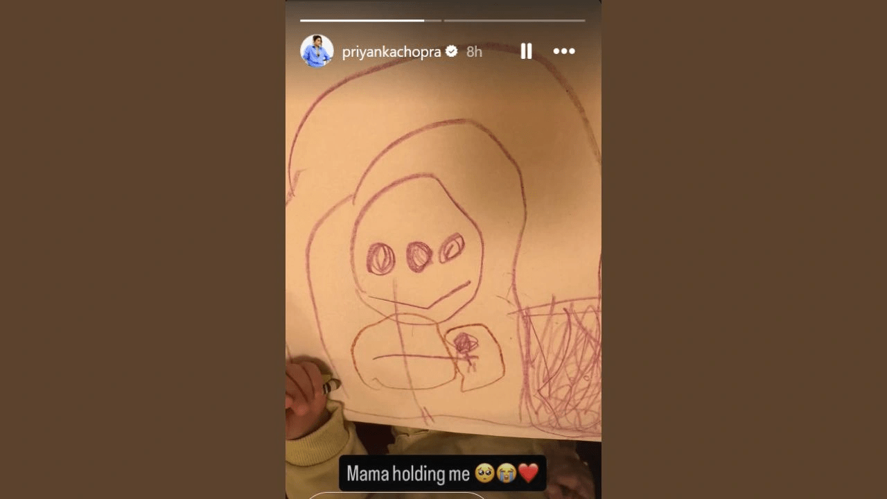 Priyanka Chopra Jonas delighted fans by sharing an adorable handmade sketch created by her daughter, Malti Marie. The actress posted the heartwarming artwork on her Instagram Stories. She captioned it “Mama holding me,” giving a rare and tender glimpse into their everyday mother-daughter moments.